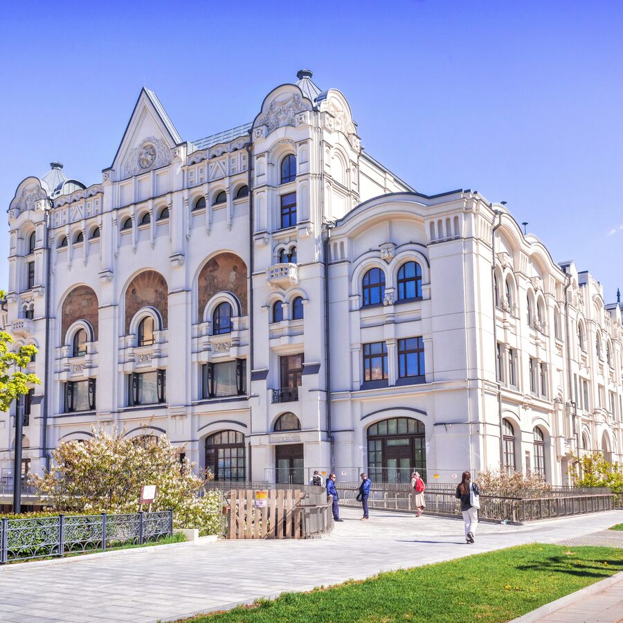 - После многолетней реставрации историческое здание на Новой площади вновь открыто: сохранены фасады XIX века и добавлены современные подземные пространства с атриумом, медиаинсталляциями и безбарьерной навигацией.